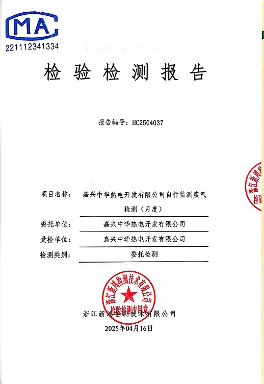 • 中華熱電4月廢氣檢測(cè)報(bào)告