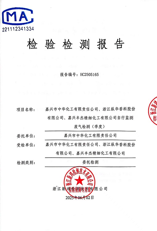 • 縱華香料5月廢氣檢測(cè)報(bào)告