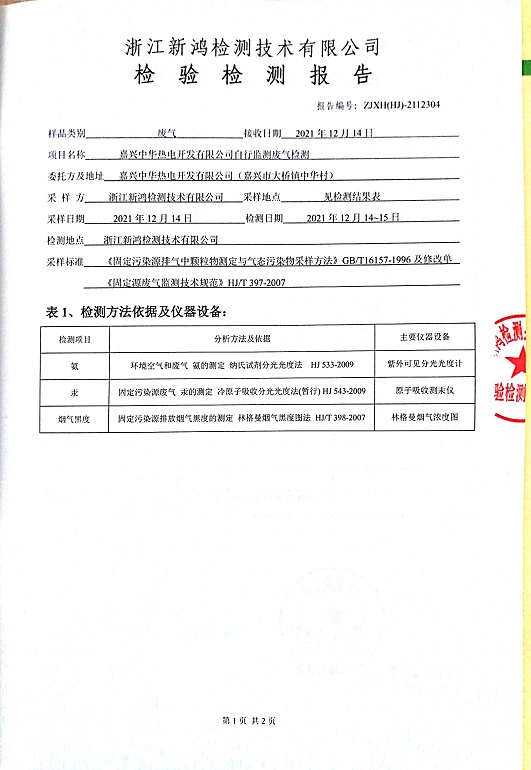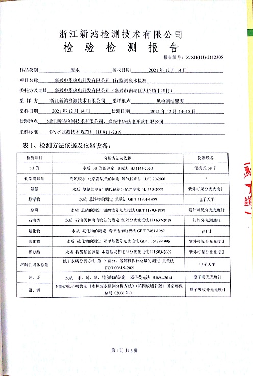 報告名稱:中華熱電12月廢氣、廢水、4季度噪聲檢測報告