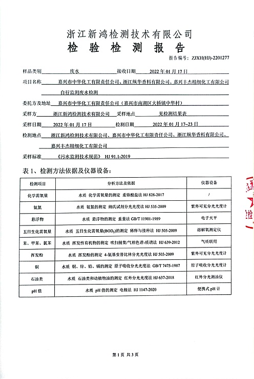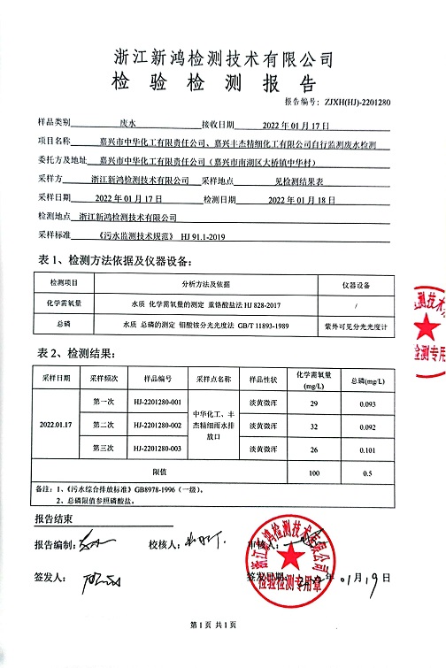 報(bào)告名稱:中華化工、縱華、豐杰2022年1季度廢水檢測(cè)報(bào)告