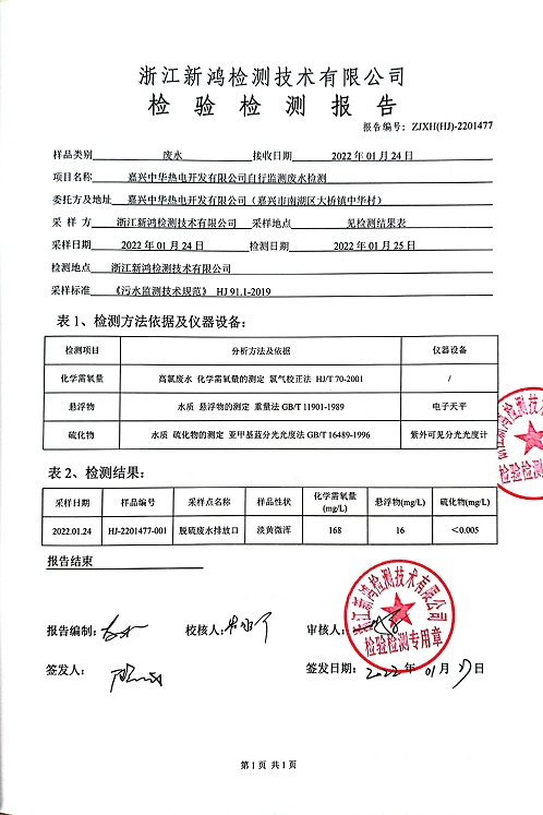 報告名稱:中華熱電2022.1季度噪聲檢測報告