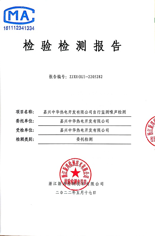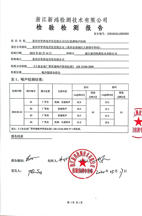 報(bào)告名稱:中華熱電2022.2季度噪聲檢測報(bào)告
