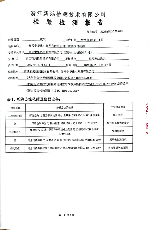 報告名稱:中華熱電2022.5月廢氣檢測報告