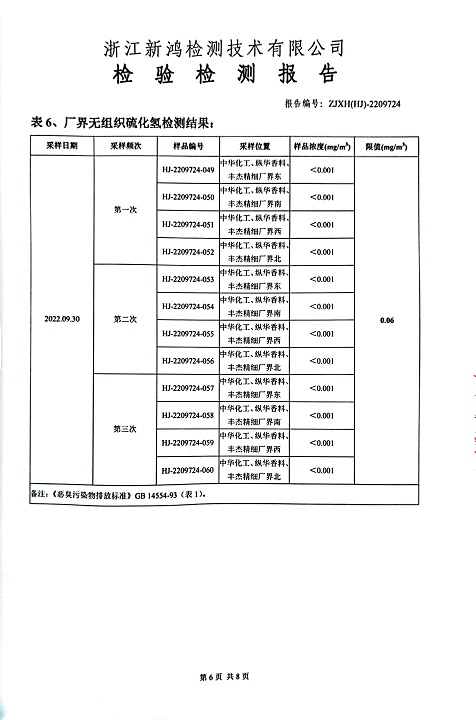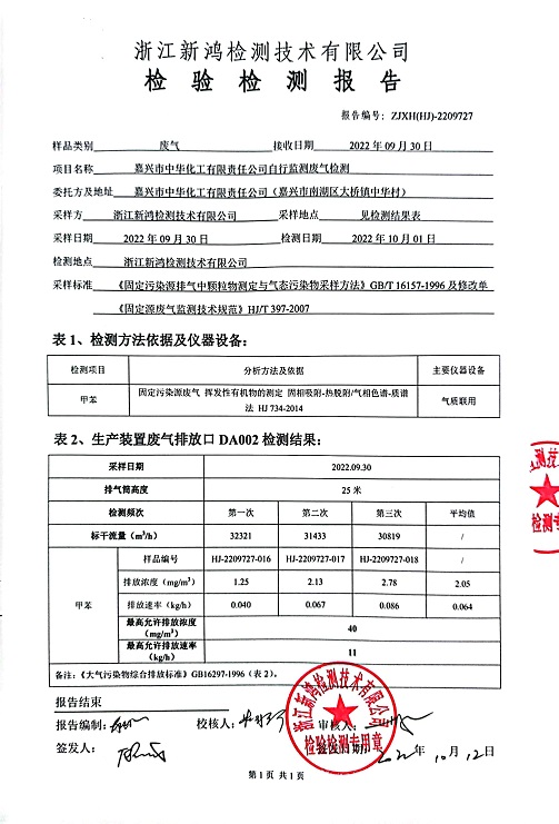 報告名稱:中華化工、縱華、豐杰2022年3季度廠界檢測報告