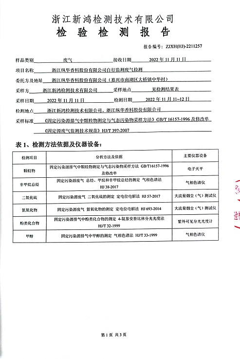 報告名稱:縱華2022年11月廢氣檢測報告