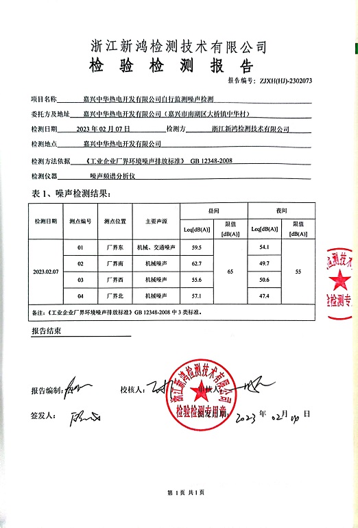 報告名稱:中華熱電2023年1季度噪聲檢測報告