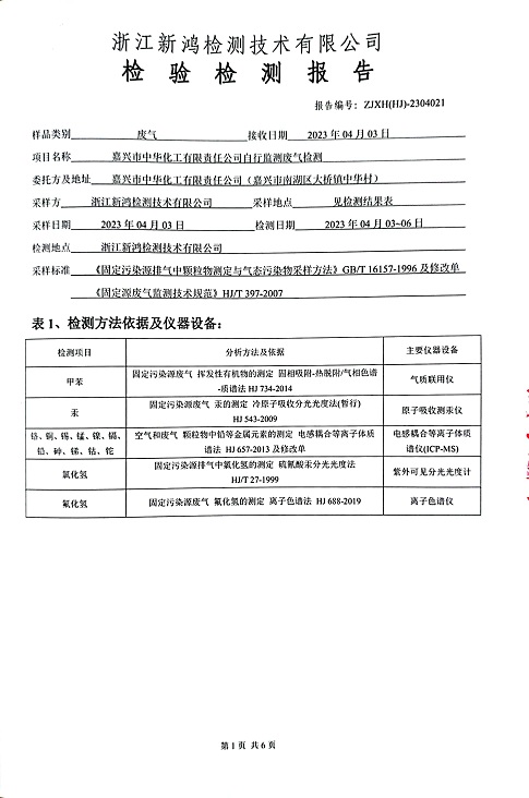 報(bào)告名稱:中華化工2023.4月廢氣檢測(cè)報(bào)告