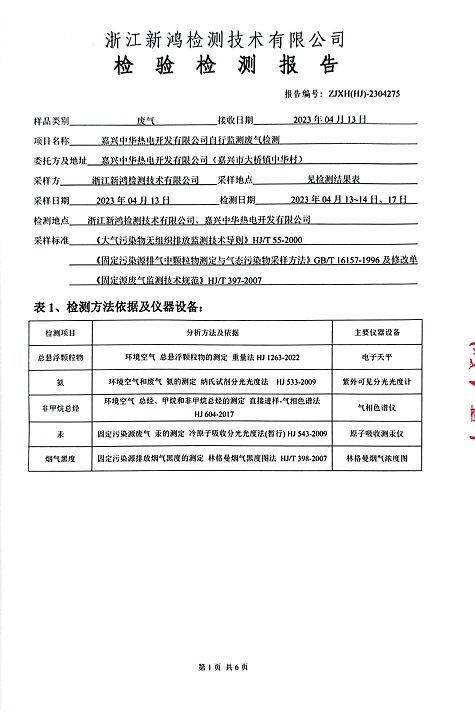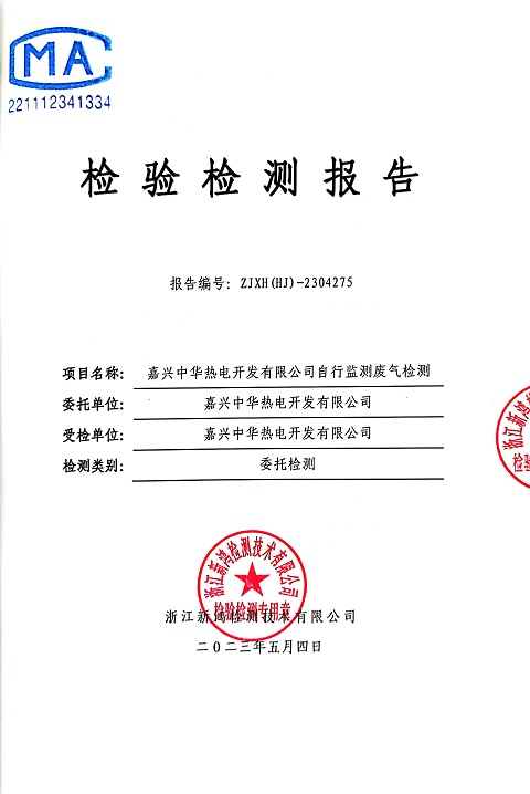 報(bào)告名稱:中華熱電2023.4廢氣檢測報(bào)告