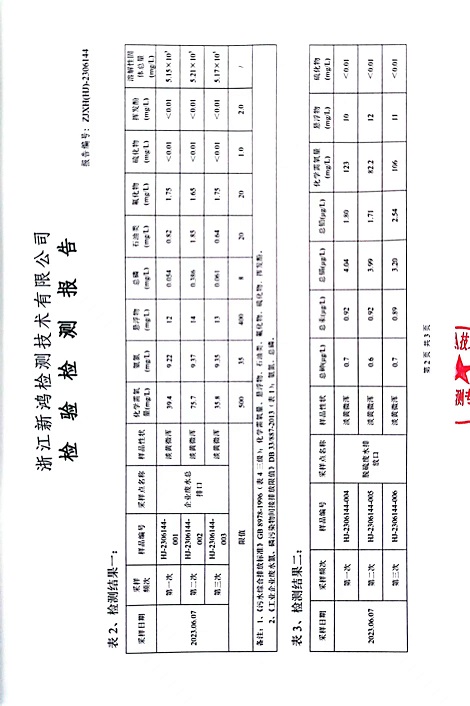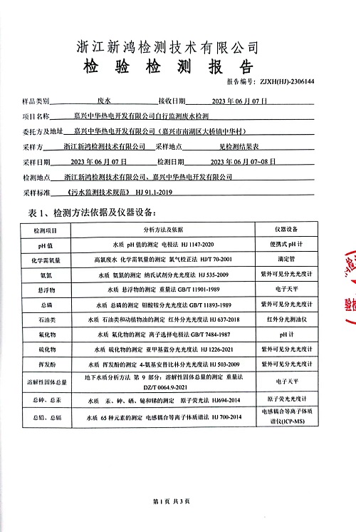 報(bào)告名稱:中華熱電2023.6月廢水檢測報(bào)告
