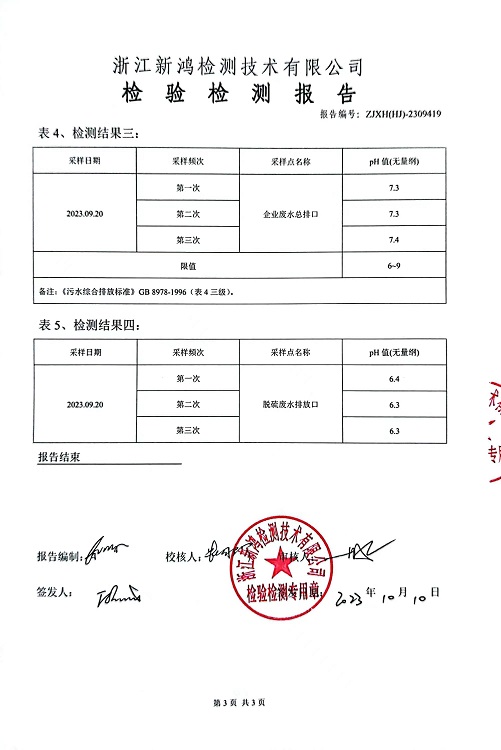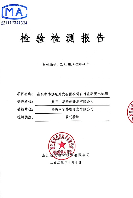 報(bào)告名稱:中華熱電2023.9月廢水檢測報(bào)告