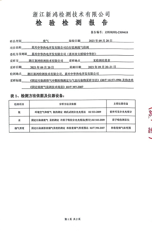 報告名稱:中華熱電2023.9月廢氣檢測報告