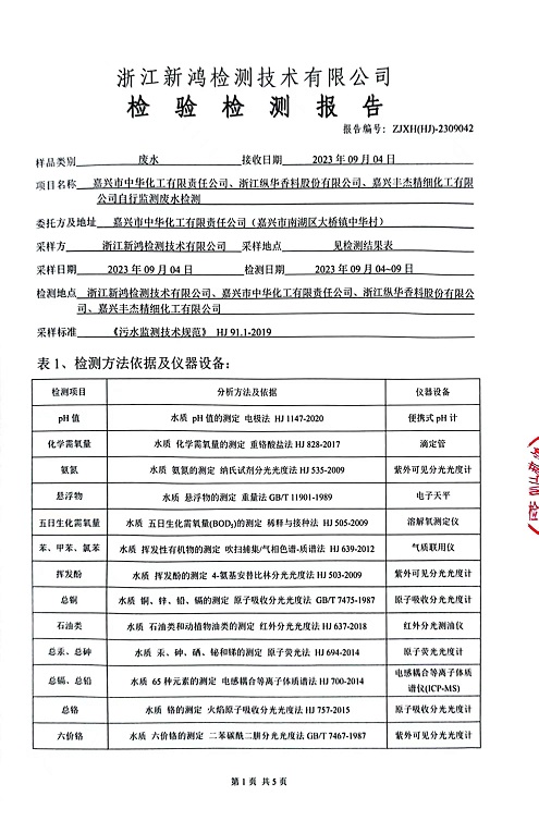 報告名稱:中華化工、縱華、豐杰2023.3季度廢水檢測報告