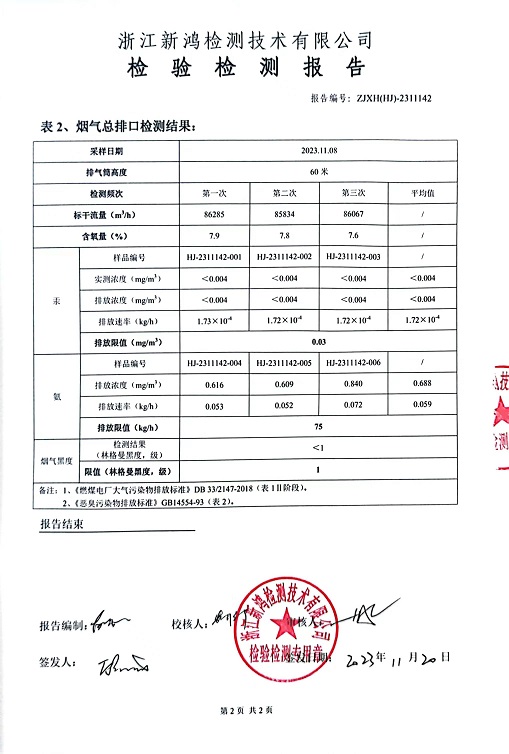 報(bào)告名稱:中華熱電2023.11月廢氣檢測報(bào)告