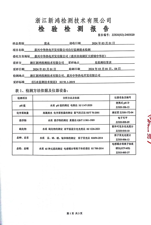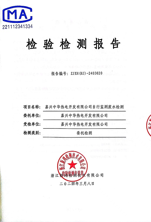 報(bào)告名稱:2024年中華熱電3月廢水檢測(cè)報(bào)告