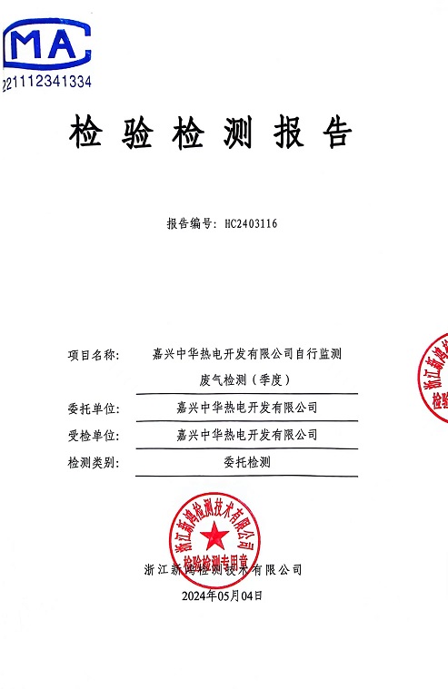報(bào)告名稱:2024年中華熱電4月廢氣檢測(cè)報(bào)告