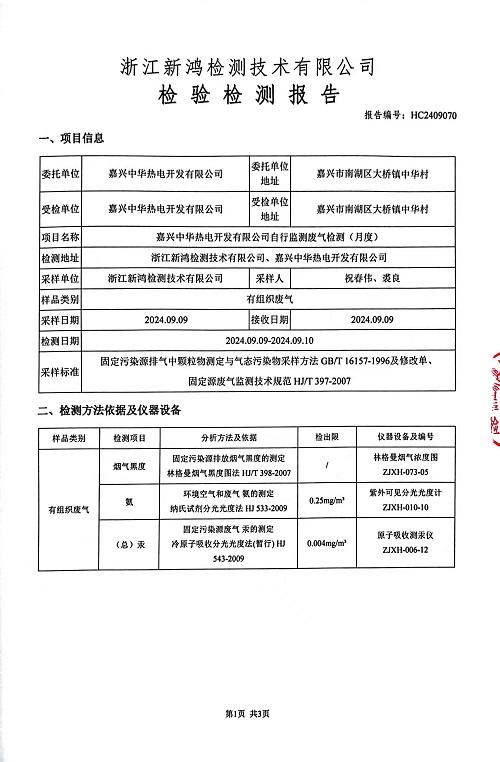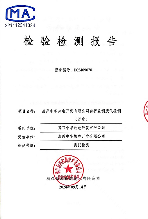 - 中華熱電9月廢氣檢測(cè)報(bào)告