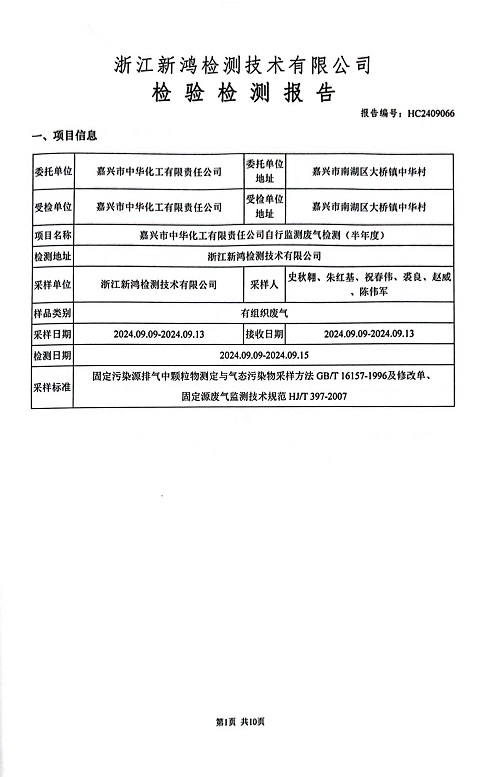 報告名稱:中華化工下半年廢氣檢測報告