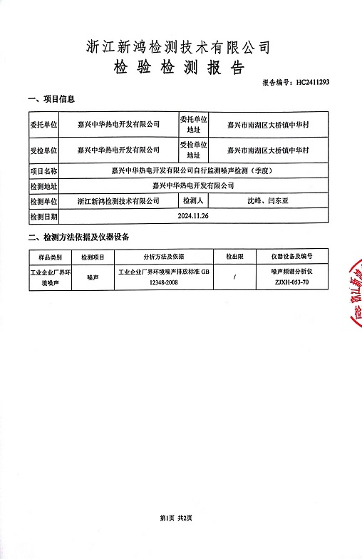 - 中華熱電3季度噪聲檢測(cè)報(bào)告
