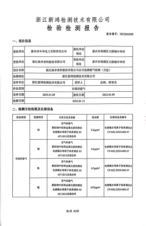 報(bào)告名稱:2025年1月縱華香料煙氣檢測(cè)報(bào)告