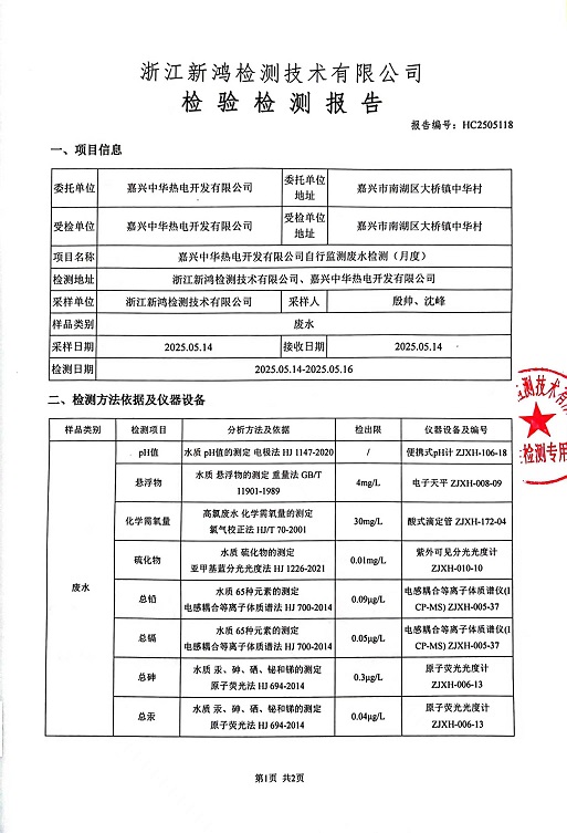 報(bào)告名稱:中華熱電5月廢水檢測報(bào)告
