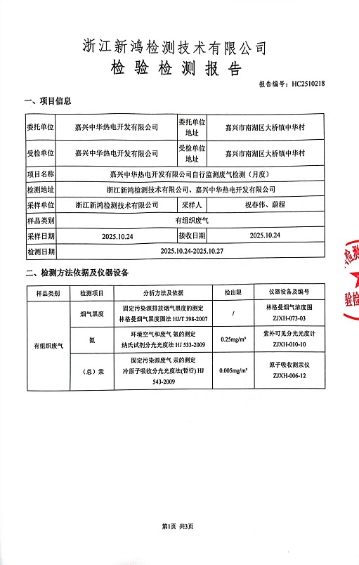 報告名稱:中華熱電10月廢氣檢測報告