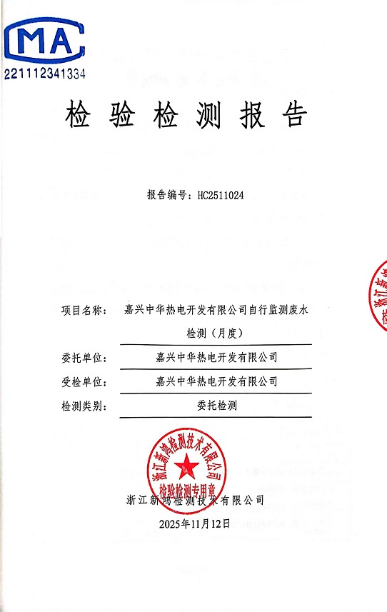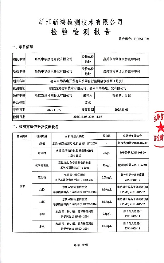 報告名稱:中華熱電11月廢水檢測報告